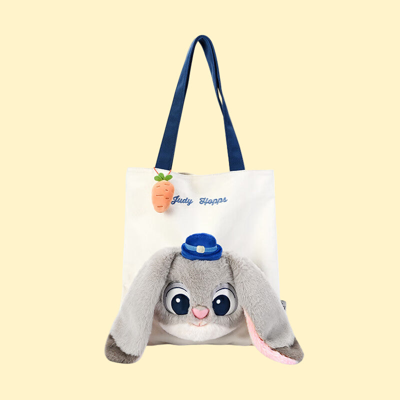 勇敢兔警官的都市隨行夥伴!這款《優獸大都會》朱迪手提袋35cm x 35cm/手提帶27cm 斜孭袋25cmx26cm ,以兔子警官朱迪,帆布材質輕巧耐用,袋身有朱迪身公仔,宛如她在Zootopia街頭巡邏般活力四射,可調節肩帶適合單肩斜背,內裡分隔夾層收納手機、錢包或小物,,頂拉鍊防盜設計。無論通勤購物還是戶外冒險,都像朱迪一樣注入正能量與實用魅力。Zootopia粉絲必備,讓你的日常充滿兔子般的無畏風格!